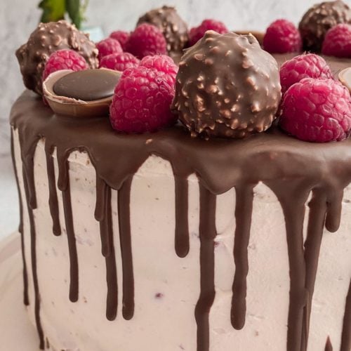 Himbeer Frischkase Torte Mit Knackigem Schoko Drip Mimi Rose